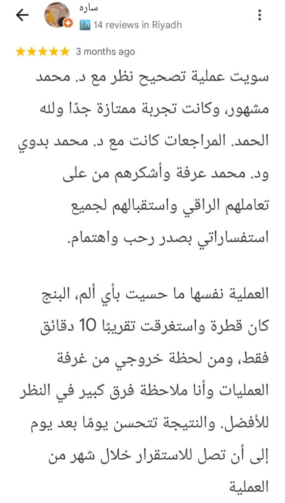 من بعض مراجعات ممن وثقوا بمركز مشهور خبراء العيون لإجراء عملياتهم من خارج المملكة وداخلها.